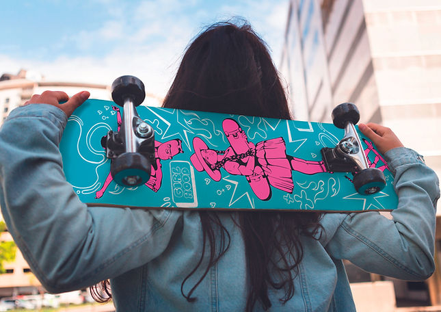 I decided to expand this brief further and mock-up some mini skateboard 'tech deck' toys. This would expand the project to another target audience group and appeal to a younger audience, broadening the goal of the project - promoting and encouraging women's skateboarding.